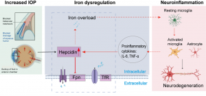 Das erste Ziel besteht darin, die Abfolge von IOP-Erhöhung und Neuroinflammation durch eine IOP-induzierte Hepcidin-Eisen-Dysregulation weiter zu untersuchen. Besonderes Augenmerk liegt dabei auf der Mikroglia-Aktivierung, der Sekretion proinflammatorischer Zytokine sowie auf Ferroptose infolge von Eisenüberladung und erhöhtem IOP in in-vivo-Modellen, Retina-Explantaten und Zellkulturexperimenten.